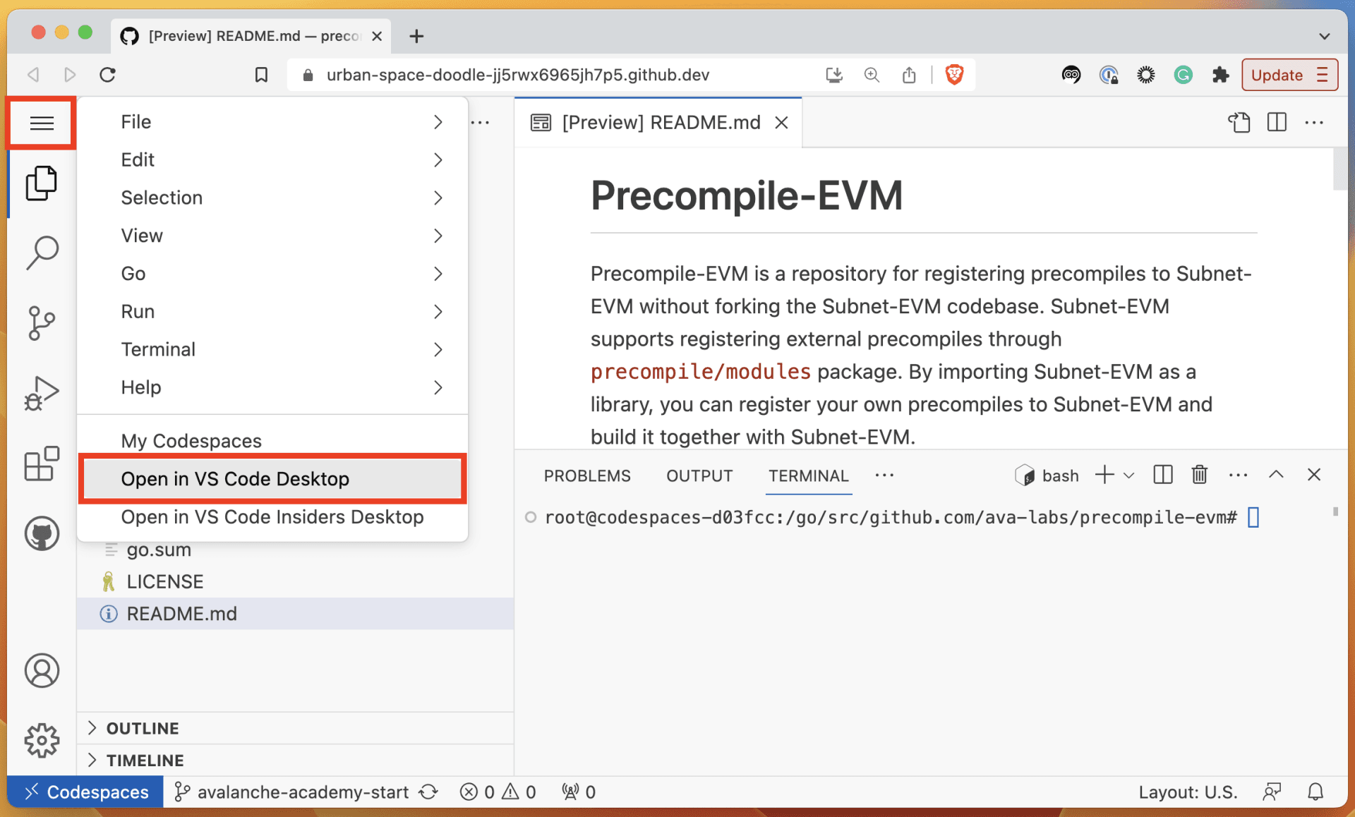 In this course we will run the Avalanche Starter Kit in a hosted environment on Github. This is the most quick way to get started.